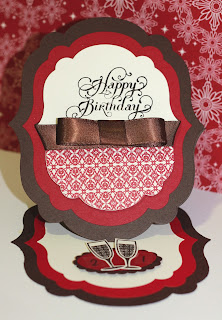 I made this card for my brother in law who ordered it for a friend of his. His instructions were pink, interactive and young. So I came up with this design with a little help from the below Stampin Up Demo.
