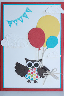 This Card I made for one of my lovely little girls that attend my kids class. She loves owls and balloons so I thought it would be nice to make this card which incorporated both.